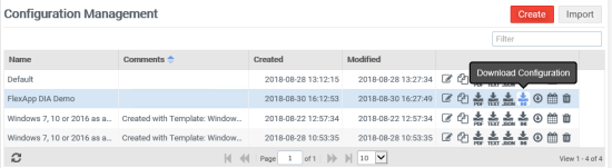 - On the Edit Configuration screen, click the FlexApp DIA icon.