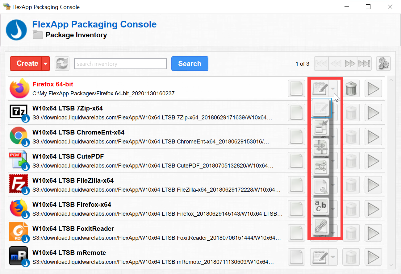 Note: If you are making changes to the FlexApp DIA module in the ProfileUnity Management Console at the same time you have the FlexApp Packaging Console open, click the Refresh button at the top of the FlexApp Packaging Console to update the Package Inventory list and update access to editing functions.