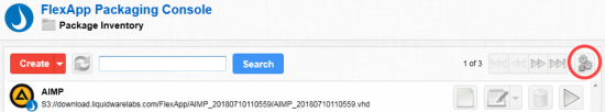 The Settings screen that opens when you click the Gears button displays the software release number and the software version number for the FlexApp Packaging Console you have installed.