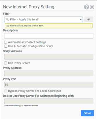 This module is used to adjust Internet Explorer's proxy settings to match your network configuration. This module supports Internet Explorer versions 9.0 and higher and Microsoft Edge.
