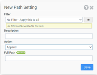 Enter the path you want to append or replace the configured path with. Surrounding quotes are automatically added to the path.