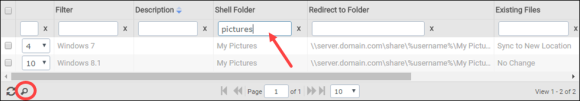 (Search) icon, sometimes seen in the bottom left of the list grid. When the Search icon is pressed, each column header will include a search bar. Enter text in as many of the search bars as you like to narrow down the number of items displayed based on the number of matches found. To clear the search criteria for a column, click the X button next to the search bar.