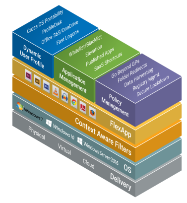 ProfileUnity™ with FlexApp delivers feature-rich, affordable User Environment Management and Application Layering for both virtual desktop deployments and physical PCs. ProfileUnity decouples user profiles, settings, and data from the operating system, thus ending the user migration cycle to new Windows desktops including Amazon Workspaces, Citrix Virtual Apps and Desktops, VMware Horizon, and Microsoft RDSH or WVD.  ProfileUnity’s ongoing User Environment Management features centralize user and policy management with context aware settings that are only limited by your imagination.