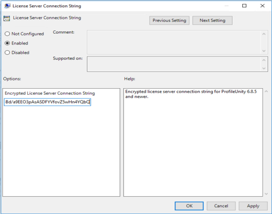 - License Server Connection String —Holds encrypted license server connection string for ProfileUnity 6.8.5 and higher.