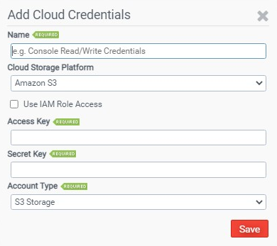 - When you select this checkbox, the Access Key and Secret Key fields are grayed out. This feature allows the customer to build-out an IAM Role that allows any device in their Amazon environment and VPC to automatically be approved to communicate with the S3 bucket without credentials.