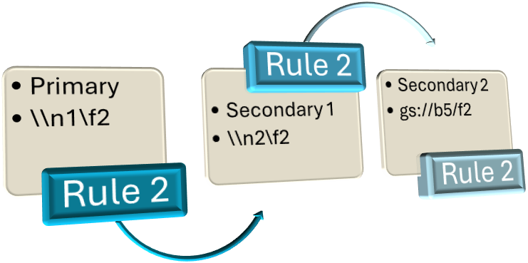 • The gs://b5/f2 (bucket5, folder2) is a Google Cloud path that is set as the next secondary path. This path would be tried if both the primary and first secondary path are unavailable.