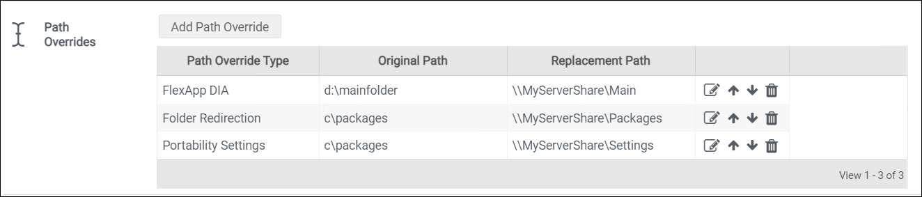 The path override list that appears in the section can be re-ordered at any time by clicking the