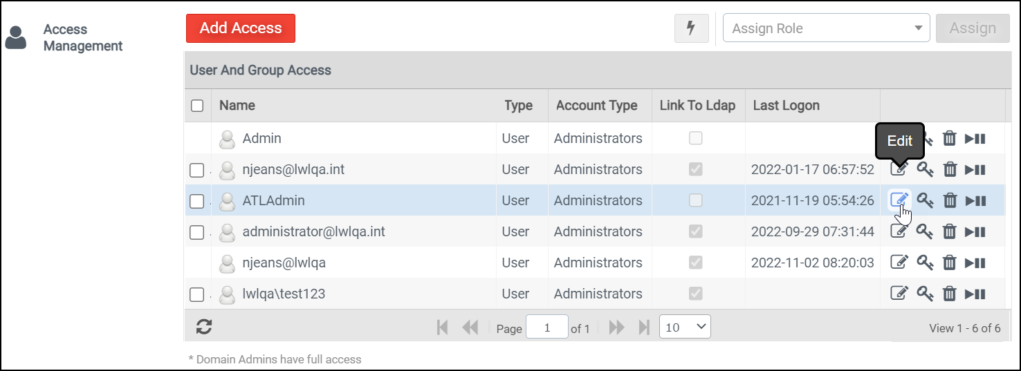 (Edit) icon next to the user’s account name in the Access Management list.