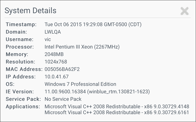 The System tab displays an in-depth hardware and software inventory report for each record in the list.