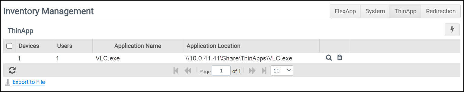 ProfileUnity’s Inventory Management screen contains tabs in the top right corner that provide administrators with an overall view of each of the FlexApp packages, system inventory components, ThinApp packages, and redirects in the environment.