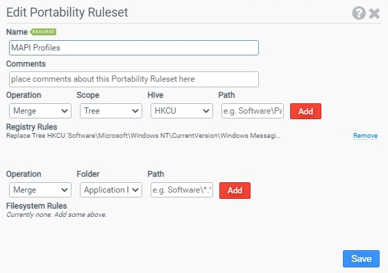 A ruleset can have multiple file system rules. File system rules allow granular storage and retrieval of files and folders located in the user profile.