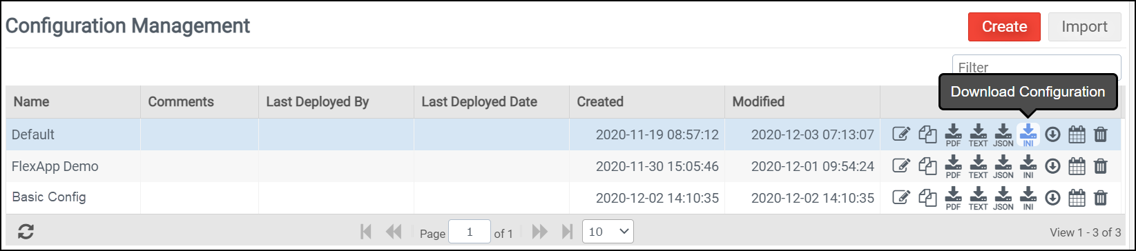 Or if you still prefer to download and copy Configuration INI files to the Deployment Path yourself, click the (Download Configuration) icon to the right of the name of the Configuration in the Configuration Management list and then copy it to the correct location.